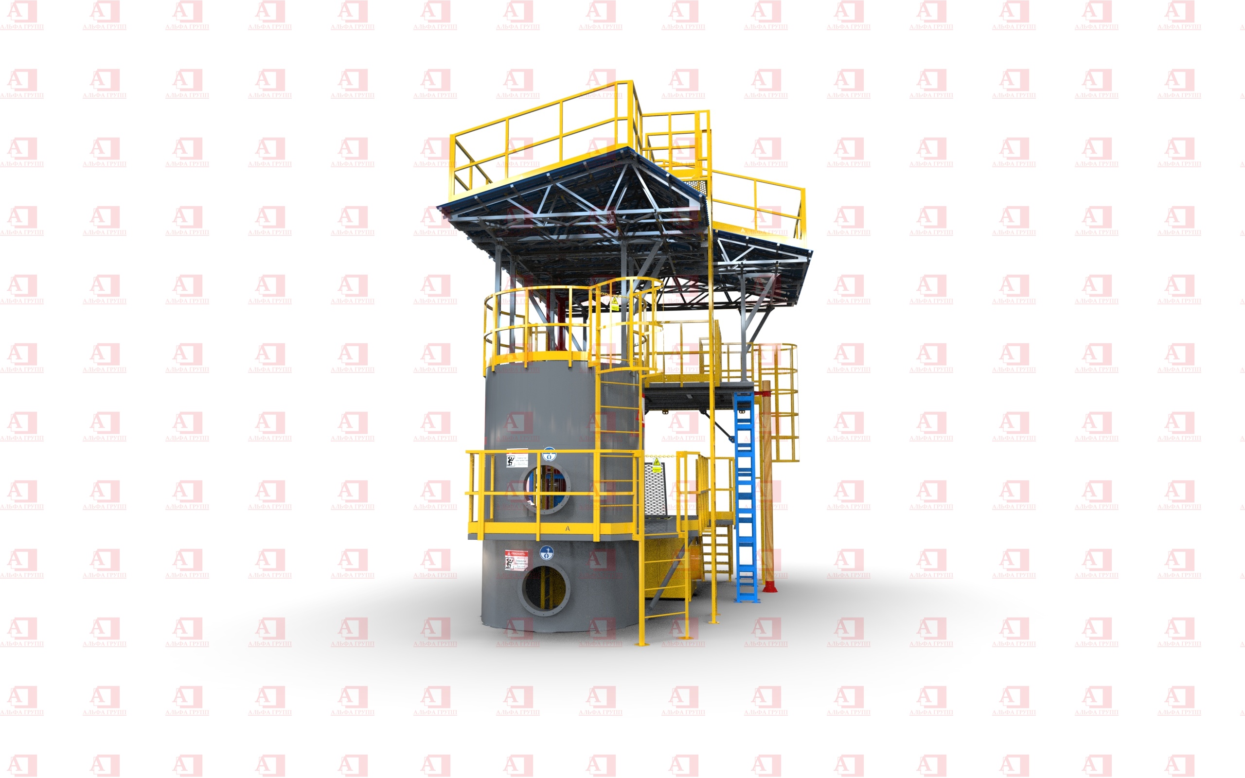 Доступ на рабочую площадку второго уровня осуществляется по стальной маршевой лестнице.