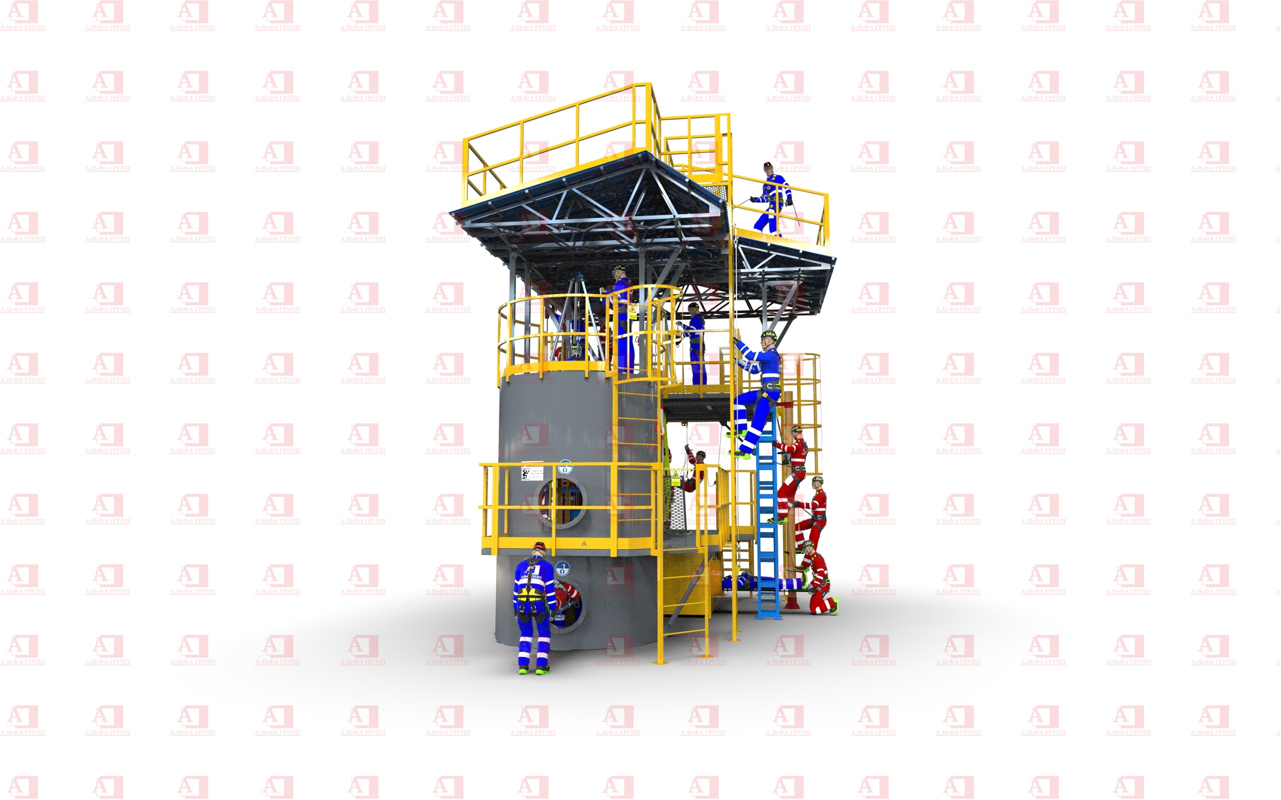 Места интенсивной работы с трипод усилены листами стали и швеллером. Люки и лазы размещены строго симметрично друг под другом для максимального использования высоты комплекса.